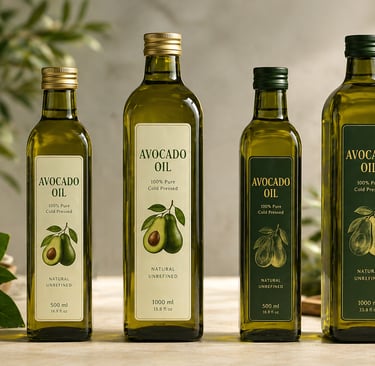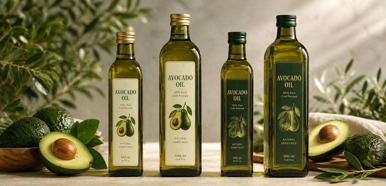 In addition to bulk industrial formats, our avocado oil is available in retail-ready presentations, with flexible options for private label and brand development.